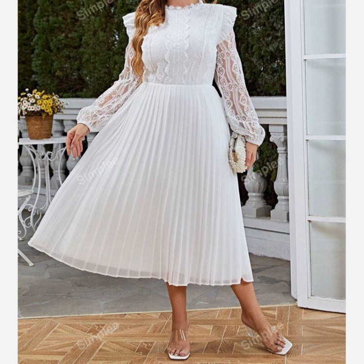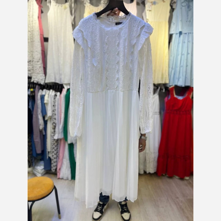 پیراهن سایز بزرگ گیپور پایین پلیسه حریر