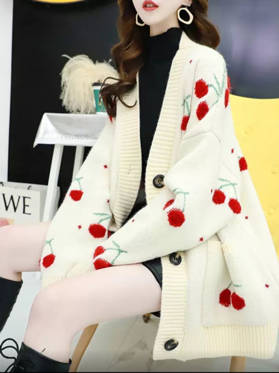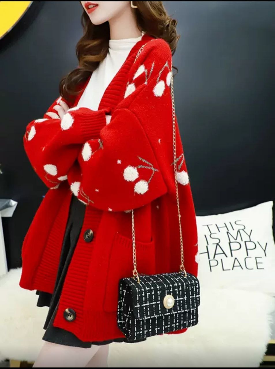 ژاکت بافت زنانه خارجی گیلاسی ۴۹۳۱