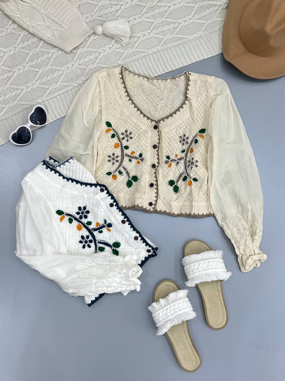 شومیز زنانه خارجی بافت قلاب دوزی مرواریدی ۵۳۶۸