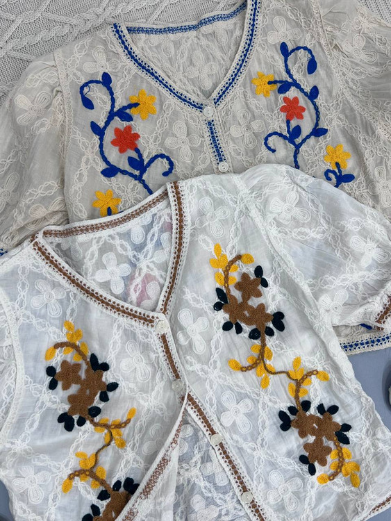 شومیز زنانه خارجی بافت قلاب دوزی استین پرنسسی ۵۳۶۸