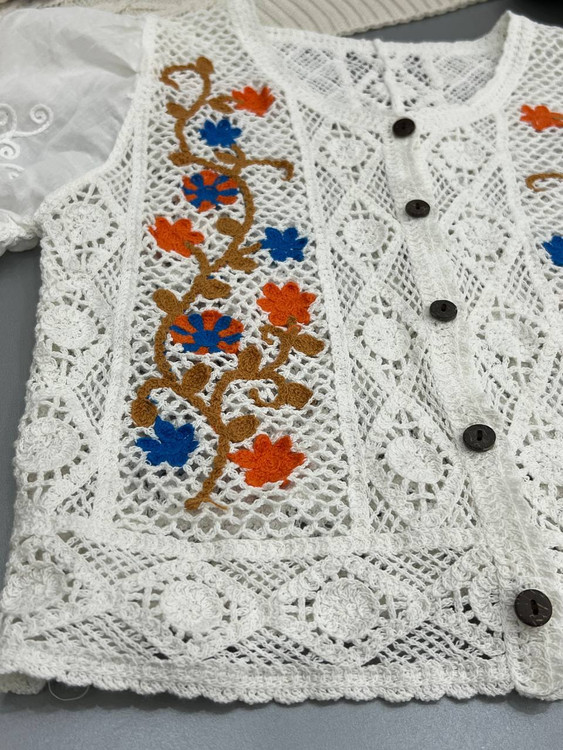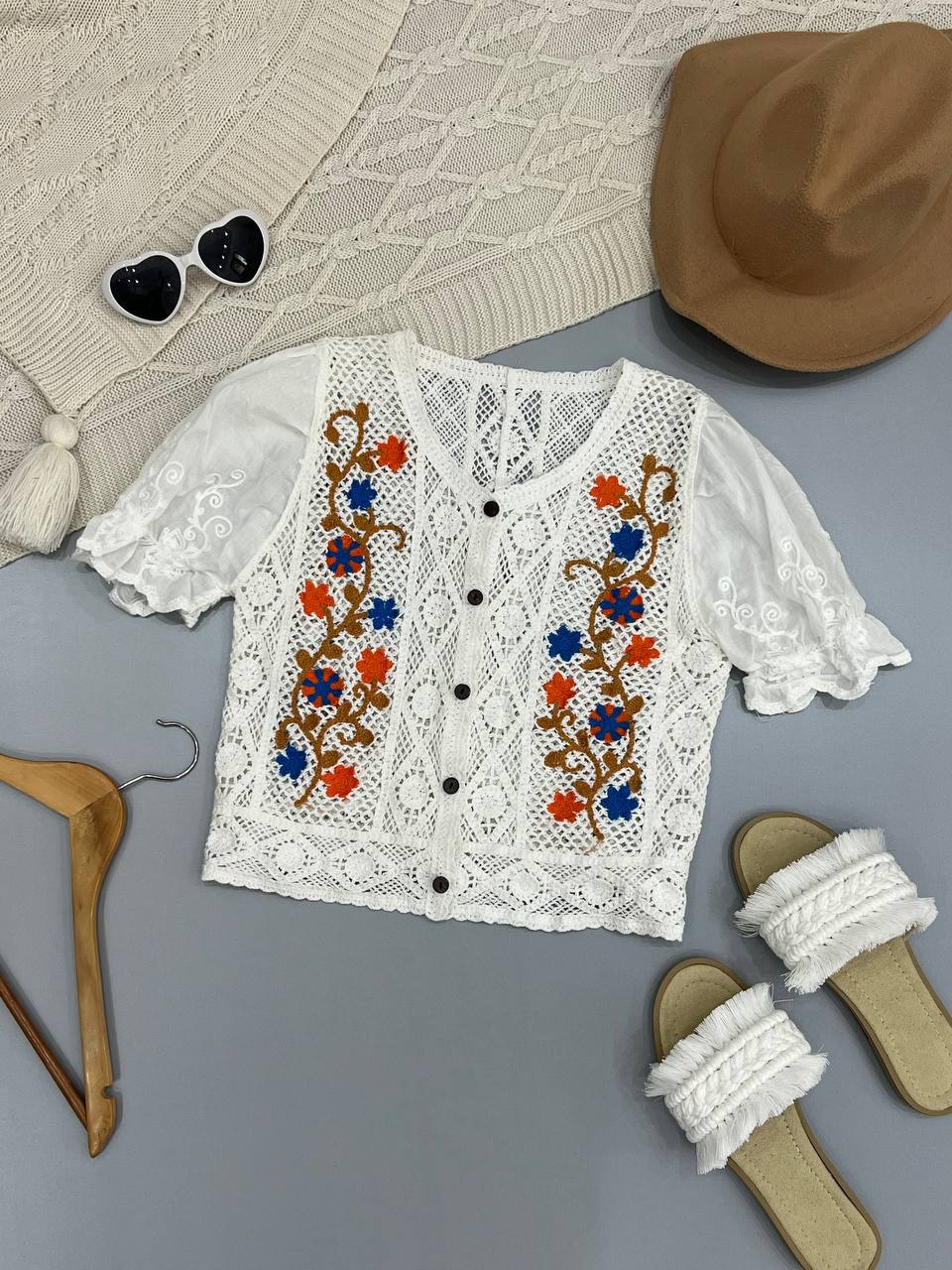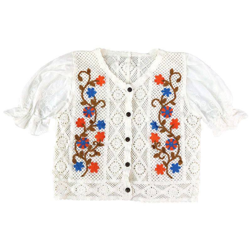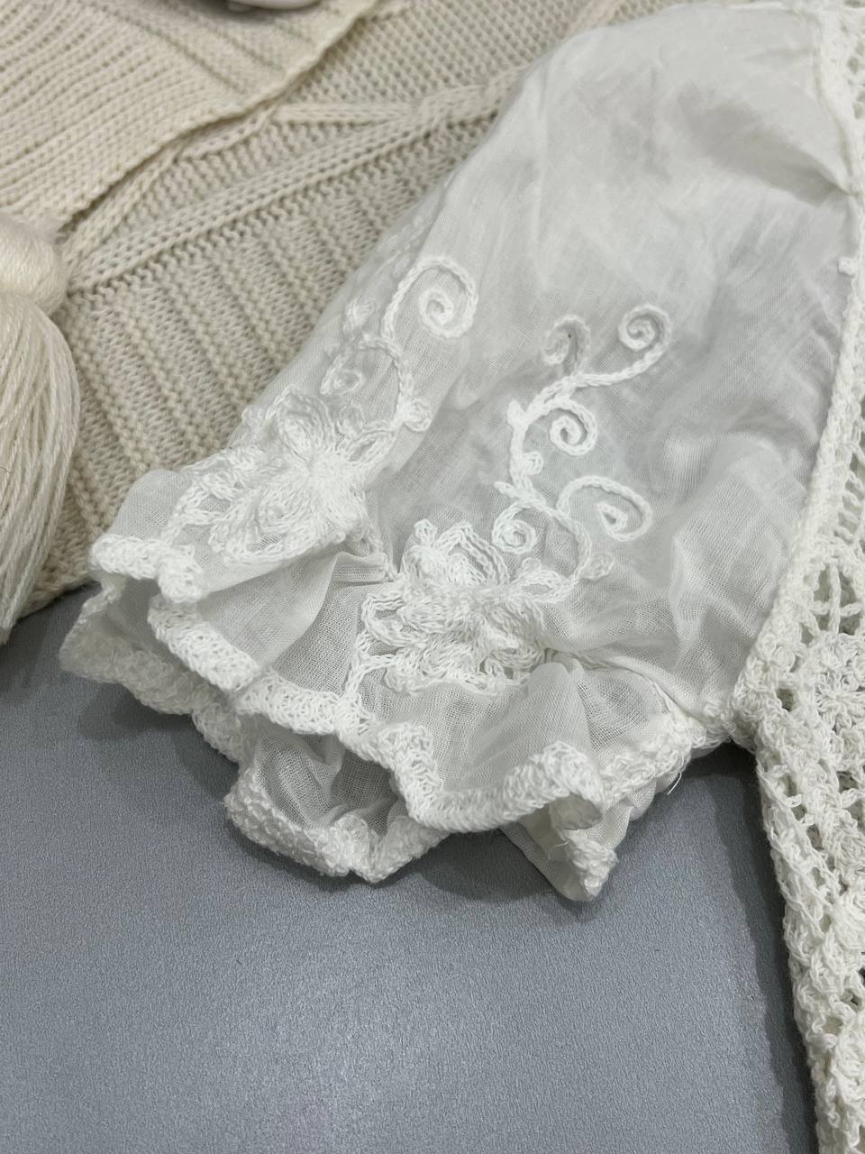 شومیز زنانه خارجی بافت قلاب دوزی استین پرنسسی ۵۳۶۸