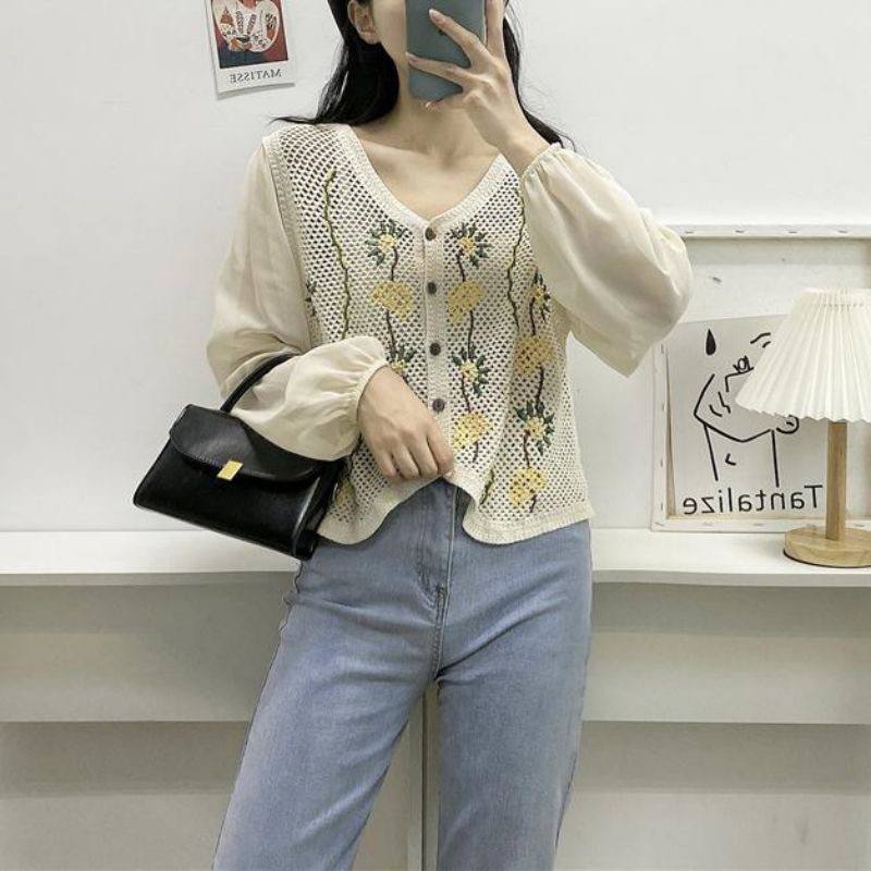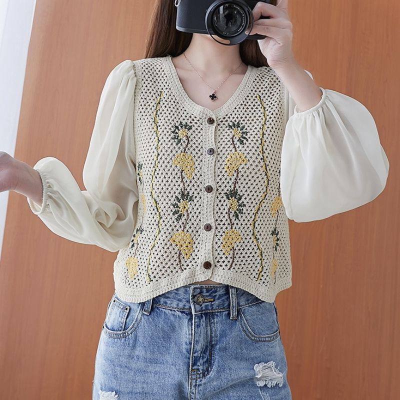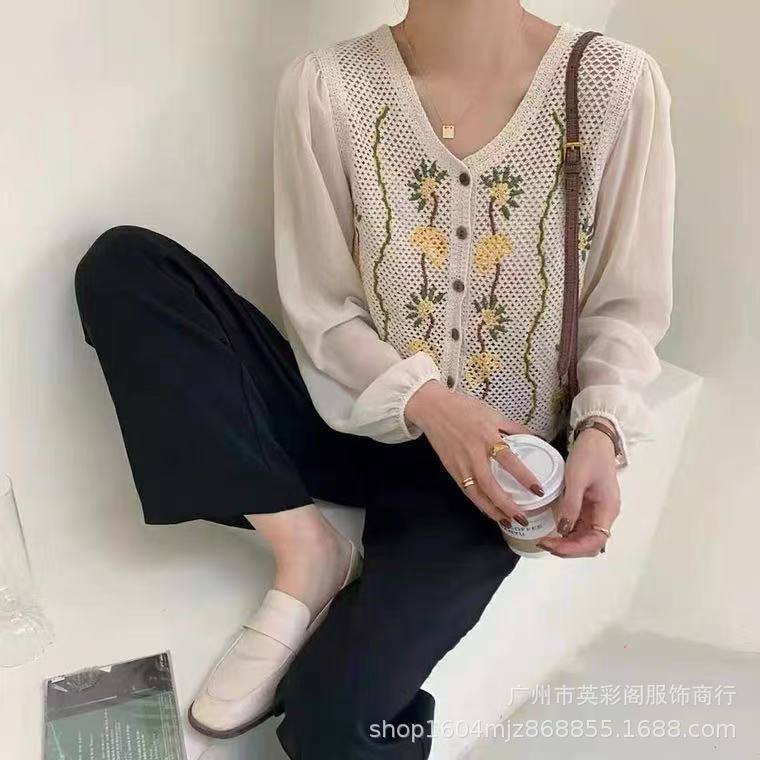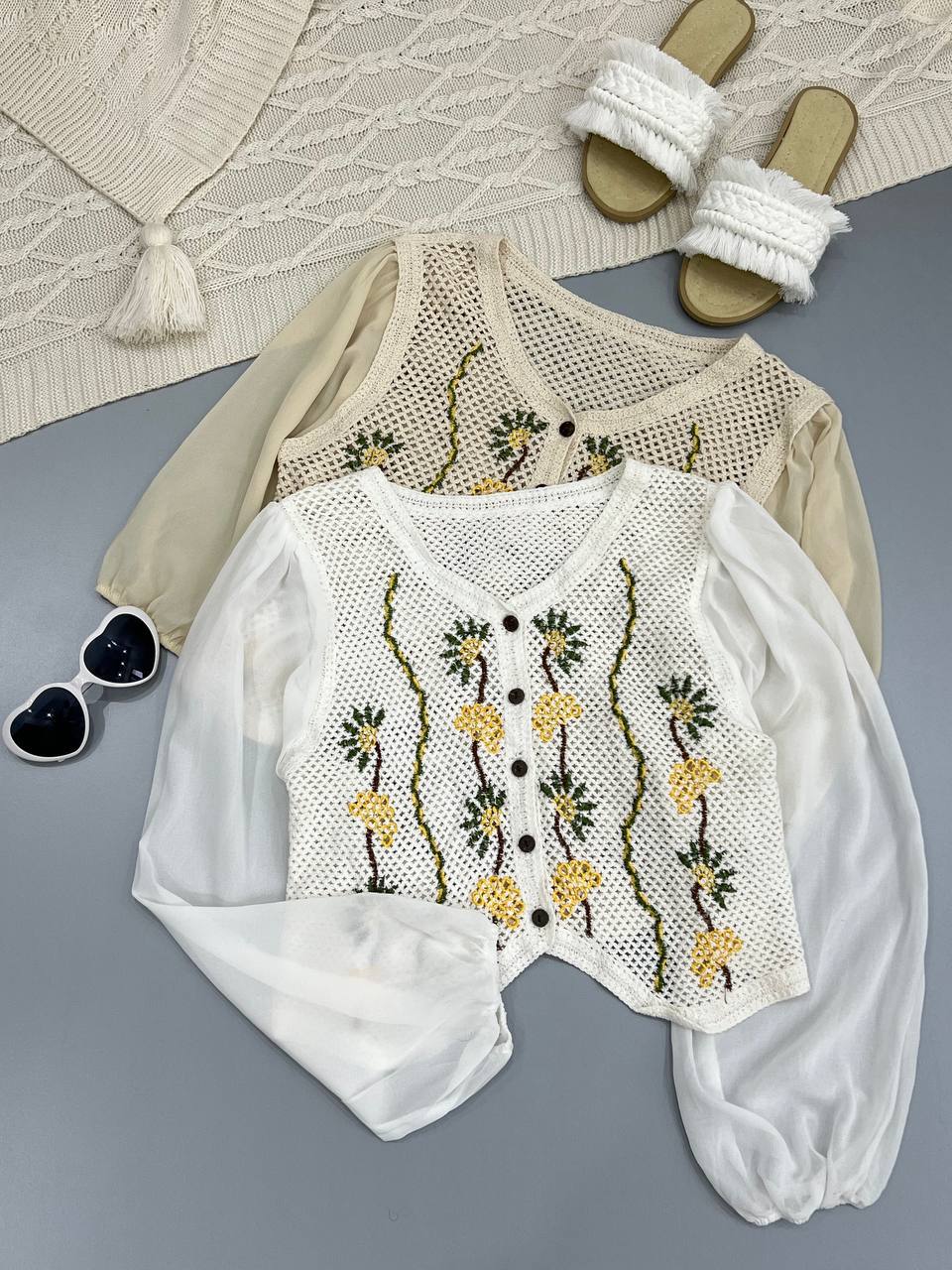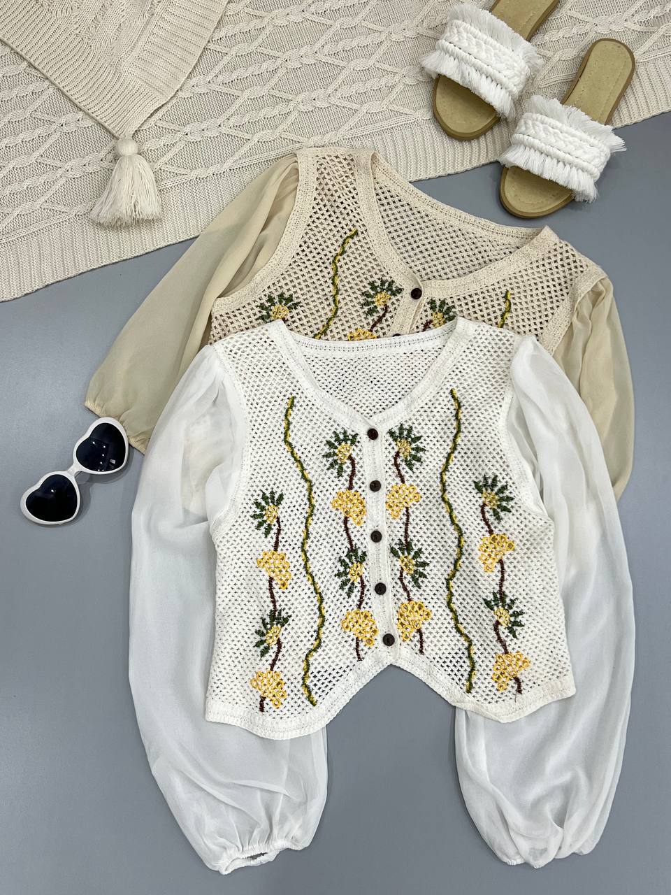 شومیز زنانه خارجی بافت قلاب دوزی ۵۳۶۸